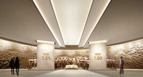 项目总用地面积为6368平方米,陈列馆整体设计风格注重简约厚重与宏大,采用多种艺术表现形式,将传统与现代、真实与艺术相结合,并注重文物保护与发展的有机结合。整个陈列馆由第一展厅---追溯历史、年代风华和第二展厅继往开来、扬帆潮头两部分组成。在空间布局上强调各个陈列点之间的内在逻辑关系,合理布置展示间,形成通透流畅富有节奏感的陈列效果,充分达到调动参观者的观展情绪。做到以精神启人,以物感人,以真情动人。作为全国爱国主义教育基地,风雅颂扬在布展设计上尤其强调,充分发挥优势,营造敞开式”课堂“大门。内容紧紧围绕着弘扬历史文化,缅怀革命先人,发扬革命精神等三个方面。施工完成后为人们提供优质的爱国主义素养之教育资源。真正打造出一个以传播和弘扬爱国主义精神为核心的教育”课堂“,推动我国爱国主义教育事业发展贡献力量。风雅颂扬文化传播集团数十年来一直秉承这样的使命与职责,把项目打造成一目了然的教科书,有效传播文化有效建立参观者的感知。